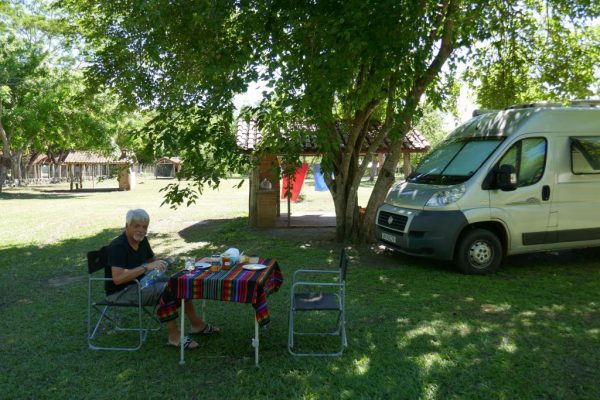 Am späten Nachmittag erreichen wir den Parque Sinuelo und werden mehr als gastfreundlich empfangen. Ein Übernachtungsplatz wird uns zugewiesen, Stromanschluss inklusive, und das Banheiro testen wir am nächsten morgen. Und….. nach dem Apero mit Caipirinha und dem Znacht mit Cabernet, und dem (sagen wir mal) Limoncello, bin ich käppelet und nicht mehr zurä$chnungsfmumpf. Guet Hicks.
