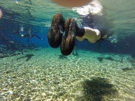 Wir organisieren eine Schnorcheltour, spazieren am Rio Formosa entlang und geniessen den riesigen Camping nur für uns zwei.