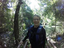 Vor der Abfahrt ein kurzer Ausflug zum Aussichtsturm mit Marcus. Vom nächtlichen Tapirbesuch sehen wir nur die Fussspuren.