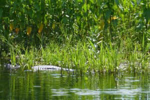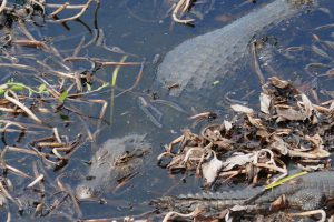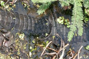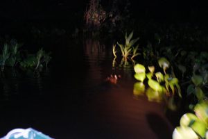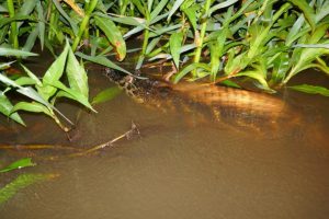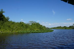 Auf dem Weg nach Poconé passieren wir wieder die Sümpfe und füttern den Jacarés die Reste vom Pacu.