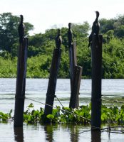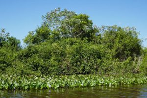 Jacarés liegen zwischen den Wasserhyazinthen, Fischreiher lauern bewegungslos auf Beute, Jabirus staken mit ihren langen Beinen im Sumpf. Spannend.