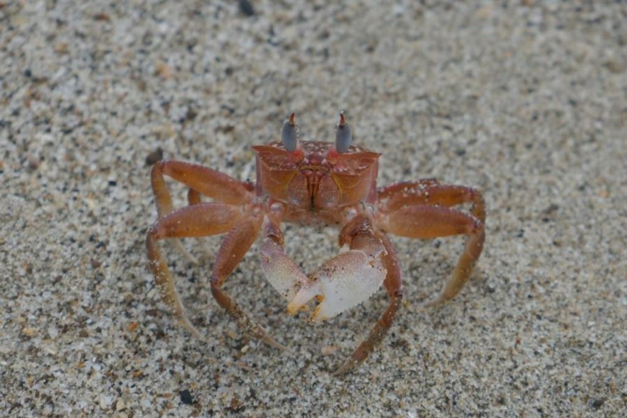 Wir teilen uns den schönen Platz mit einem spanischen Ehepaar. Sie ersetzen in schweisstreibender Arbeit die Radlager an ihrem VW Bus. Wir frühstücken unter Palmen. Geniessen den freien Blick übers Meer. Strandspaziergang. Kleine Krebse rennen im Quergang über den Sand und verschwinden in ihren Schutzlöchern.