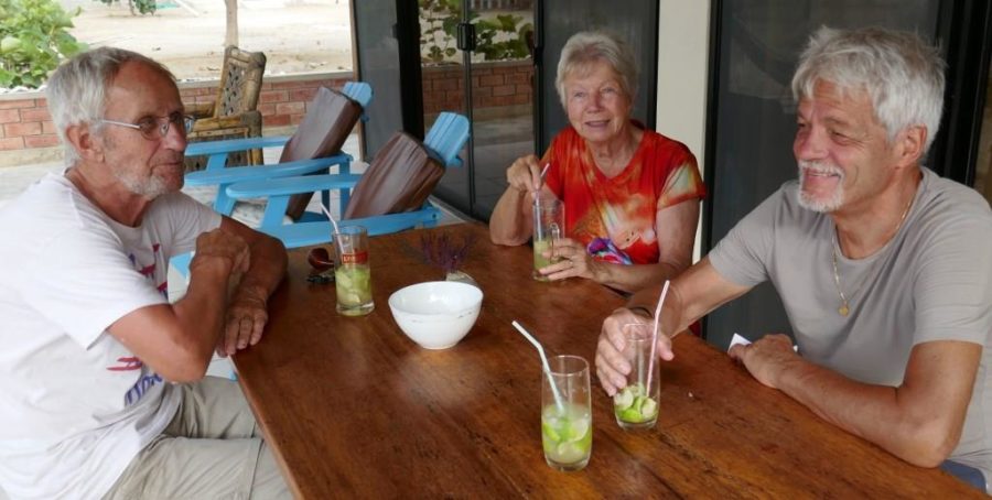 Wir sind eingeladen, und trinken mit Sylvia und Per zum Abschied ein Glas Wein unter Palmen. Danke ihr Lieben.