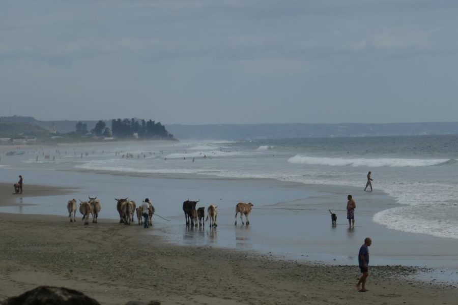 Weiter geht es an die Küste. Stellplätze für Camper sind rar. Kleine, einfache Dörfer. Ayangue, Valdivia, Manglaralto, vergebliche Suche. Der Camping in Montanita, Hippie- und Surferhochburg, ist auch nichts für uns. Am Ende des Dorfes entdecken wir eine schöne Hotelanlage direkt am Pazifik. Wir fahren die steile Stichstrasse hinunter. Ob wir hier bleiben dürfen? Wir dürfen!