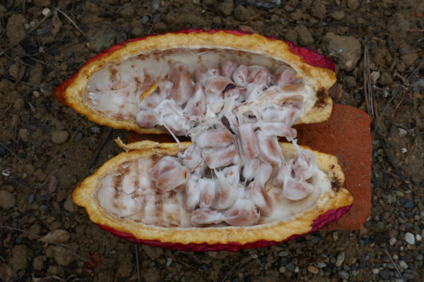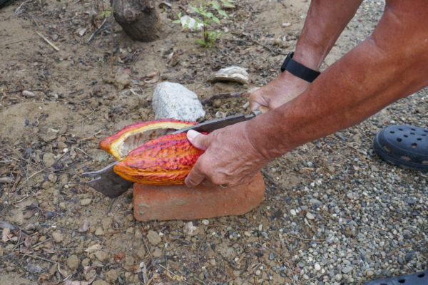 Die Kakao-Frucht haben wir aufgeschnitten …..