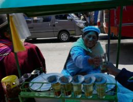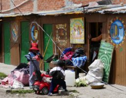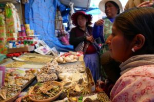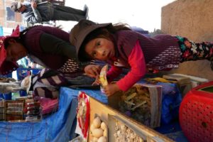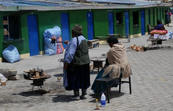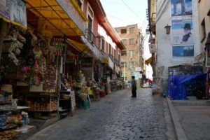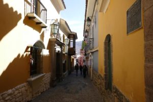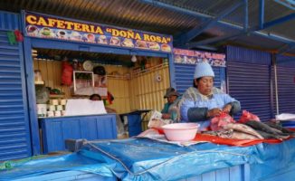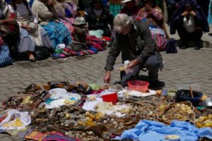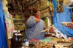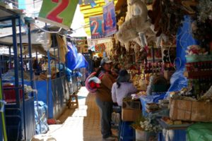 Die Placa de Armas enttäuscht ein wenig. Wenig Bäume und Pflanzen, viele Steinplatten. Schön sind die gewaltigen Gebäude die den Platz umgeben, in freundlichem Hellgelb, mit kunstvoll geschnitzten, dunkelbraunen Balkonen. Wir lassen uns durch die Gassen des Mercados Central treiben. Chaotisches Durcheinander. Hunderte Porteros, die die Waren auf Sackkarren durch das dichte Gedränge schieben. Mega.