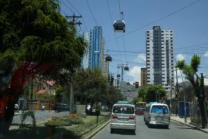 Mit der Metropolitana, Schnellbuslinie, fahren wir für knappe 2 Fr. auf der eigens für sie gebauten Strecke ins Zentrum. Wie Sardinen in der Büchse, mit viel Körperkontakt, aber como la gente.