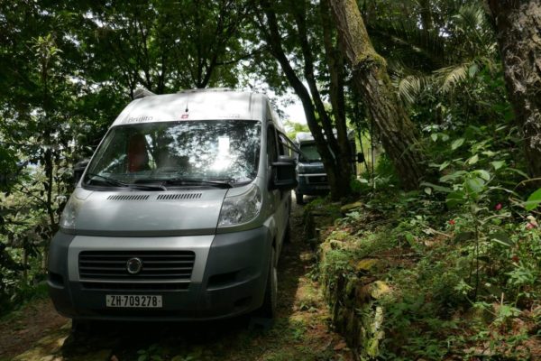 Der Himmel ist bewölkt die Berge hinter Wolken verborgen. Wir fahren trocken weiter nach Caraz. Auf dem Camp Guadelupe teilen wir den super schönen Stellplatz, mit drei weiteren Campern. Der Besitzer ist verreist, trotzdem steht alles zu Verfügung. Strom, Wifi, WC, Dusche. Das ist weitaus der schönste Platz den wir bisher in Peru angetroffen haben.