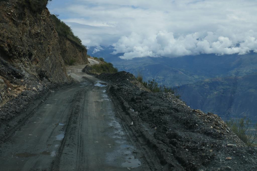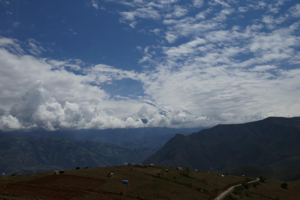 An den Cordilleren stauen sich die Wolken. Die Strasse führt uns wieder hinauf auf 4000m. Leichter Nieselregen der später in richtigen Regen übergeht. Kuhherden werden auf der Strasse getrieben. Viele Lastwagen. In den Ortschaften Mototaxis von allen Seiten. Die Strasse begleitet den Rio Santa durch ein anfangs wildes Tal. Unser Tagesziel ist Huaraz, der Hotspot für Bergsteiger und Trekkingtouristen. Die Ortseinfahrt liegt nach einer Brücke, der Bergfluss ist angefüllt mit Abfall, die Hauptstrasse ist eine Baustelle, am Strassenrand türmen sich Aushub und Bauschutt.
