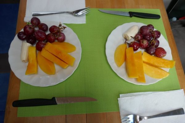 Die Sonne scheint durch die Ritzen der Vorhänge und weckt uns. Es geht ein stürmischer Wind, aber drinnen ist es gemütlich warm. Erster Zmorge im Brujito, vor dem Fenster schaukeln die Boote. Danach heisst es alle Kästen ausräumen, Bestandsaufnahme, Koffer und Taschen leeren (läck das Puff) und für alles einen Platz finden.
