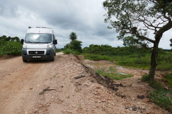 Heisse Nacht. Ab und zu ein harter Schlag aufs Dach. Wir stehen unter einem Mangobaum und er bewirft uns mit Früchten.