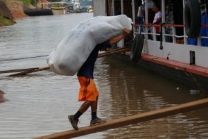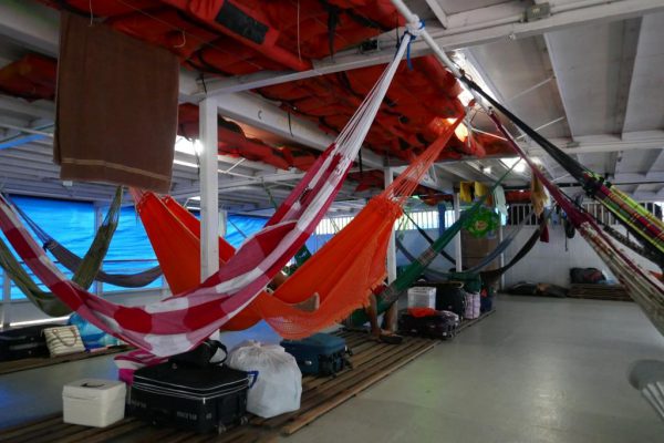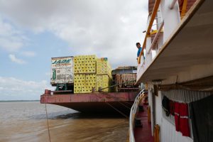 Der Morgen ist da! Wir warten auf Tiago, unser Ansprechpartner im Hafen. 1500.- Reais kostet das Ticket nach Belem, umgerechnet 500.-CHF. Mit dem Voucher im Sack spazieren wir zur Anlegestelle und schauen eine Weile zu wie ein Schiff entladen wird, in der Meinung es sei unseres. Am Nachmittag erfahren wir, dass unser Schiff noch gar nicht angekommen ist?!?