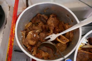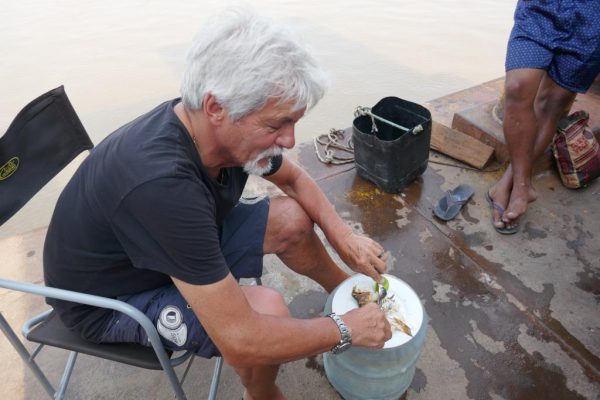 Ab und zu kommen Flussbewohner mit ihrem Boot zur Balsa um etwas zu verkaufen. Die Caminhoeiros haben Fische gekauft und die werden grilliert. Auch wir sind eingeladen. Lecker.
