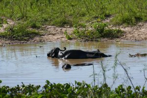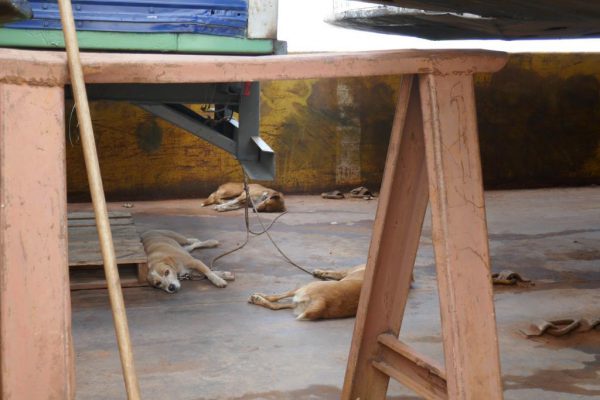 Ein klein wenig ungemütlich ist der Gedanke von Piraten besucht zu werden schon. Wir fahren ca 150km durch einen schmalen Flussarm der berüchtigt ist für Überfälle. Trotz der anfänglichen Anspannung schlafen wir gut und die Hunde beginnen ihr Gebell erst um sechs.