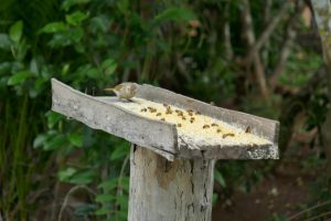 Frühstück im Brujito, Früchte y um cafezinho. Ein Sturm kündigt sich an. Die Balsa wird an ein geschütztes Ufer gebracht und hier warten wir ruhiges Wetter ab.