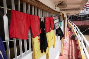 Erneuter Spaziergang zum Hafen. „Unser“ Schiff wird abgeladen. Das kann dauern.