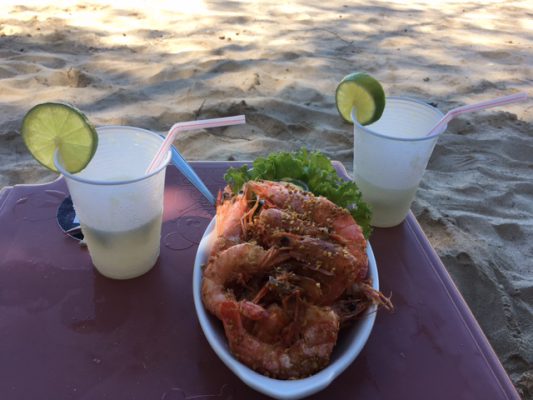 Wir haben nun unseren Menueplan umgestellt. Wir sind vom Kaffee mit Brötli auf Caipirinha mit Riesencrevetten umgestiegen. Wir wollen doch die heimische Kulturen fördern und unterstützen. In diesem Sinn…….