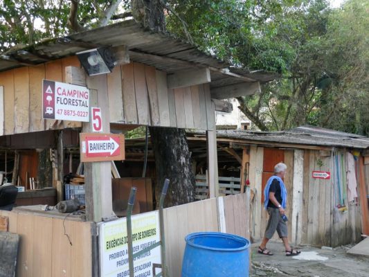 Von hier ist es ein Katzensprung an die Küste, angepeiltes Ziel die wundersame und wunderbare Bucht Retiro dos Padres bei Bombinhas. Der Camping ist zwar sauteuer, warme Dusche für Frauen gibts erst nach Reklamation und geputzt wird wahrscheinlich erst nächste Saison.