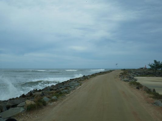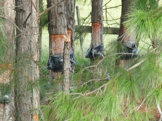 Wir folgen der Küste südwärts, durch riesige Felder und kilometerlange Wälder. Hier wird immer noch Kieferharz gesammelt