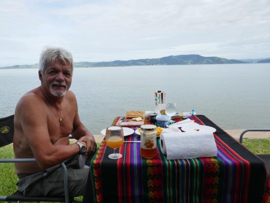 und geniessen die Fahrt südwärts. Wir vermeiden die grossen Ferienorte, mit einem Abstecher im kleineren Dörfchen wie Garopaba …..