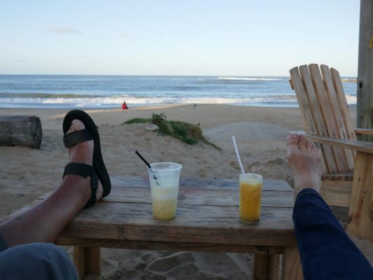 Wir wollen weiter ans Surfparadies. Unterwegs an den hübschen Dörfchen vorbei finden wir einen Zuckerrohr-Schnaps und zum Zmittag in der berühmten Austerei die dazu gehörenden Austern und Cebiche und zum Spülen einen argentinischen Torrontes. Lecker…..