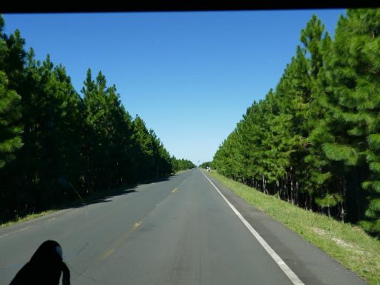 Wir folgen der Küste südwärts, durch riesige Felder und kilometerlange Wälder. Hier wird immer noch Kieferharz gesammelt