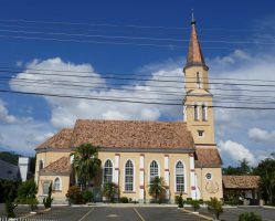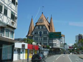 Wir nähern uns der Gegend mit den deutschen Auswandern, vor allem bekannt die Region um Blumenau mit seinem Oktoberfest. Die Architektur ist geprägt von deutschen Fachwerkbau, die Leute sehen deutschstämmig aus und die Anschriften und Ortsbezeichnungen auch …..