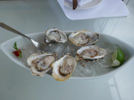 Wir wollen weiter ans Surfparadies. Unterwegs an den hübschen Dörfchen vorbei finden wir einen Zuckerrohr-Schnaps und zum Zmittag in der berühmten Austerei die dazu gehörenden Austern und Cebiche und zum Spülen einen argentinischen Torrontes. Lecker…..