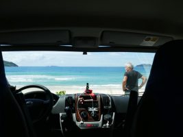 und geniessen die Fahrt südwärts. Wir vermeiden die grossen Ferienorte, mit einem Abstecher im kleineren Dörfchen wie Garopaba …..