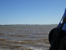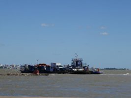 Nach weiteren 150 km auf der Lagunenstrasse erreichen wir die Fähre nach Rio Grande. Die Ueberfahrt entwickelt sich zur Geduldsprobe….