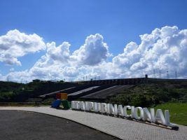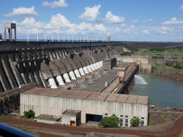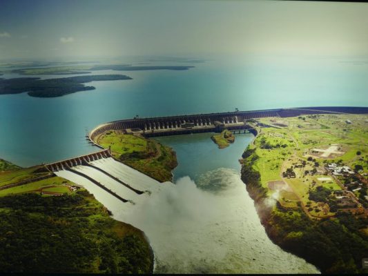 Der Parana trennt die beiden Staaten Brasilien und Paraguay. Und genau dort wurde der Fluss 1973 gestaut und mit seinen 20 Turbinen das grösste Flusskraftwerk der Welt gebaut.