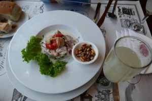 In Putre regnet es, wir suchen uns trotzdem ein Beizchen und essen Alpaka-Fleisch mit Quinotto.