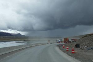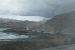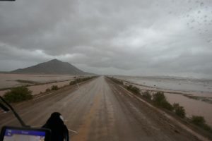 Dann geht es aufwärts Richtung Anden, nächstes Ziel Putre auf 3600m. An einer Baustelle warten wir 2 Stundden auf Weiterfahet, dann gehts hoch und langsam in den Regen…..