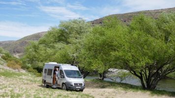 Es geht in Richtung Anden. Schöne Berglandschaft, ein paar Schneefelder blinken weiss. Nach Andacollo auf Ripio weiter. Ca. 40km vor der Grenze wollen wir die Nacht verbringen. Guter Stellplatz direkt am Fluss. Weit und breit niemand sonst. Eine feine Mondsichel grüsst vom Himmel.