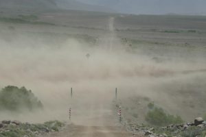 Geniesse die Fahrt durch die karge Landschaft. Hohe Berge und weite, karge Täler. Wo es Wasser hat, schlängelt sich ein grünes Band durchs Tal. Den argentinischen Zoll passieren wir reibungslos, der Himmel ist arglos blau. Auf dem Paso Pichachen empfängt uns ein rauer Wind und Wolken ziehen auf. Riesige Staubfahnen werden vom Sturm empor gewirbelt und Sand prasselt gegen den Brujito. Die chilenischen Zollbeamten begrüssen uns per Handschlag. Alles i.O. Ich werde doch nicht per Interpol gesucht. Das war nur ein Eingabefehler. Es beginnt zu regnen. Die Strasse ist aus Lavasand und wird zum Glück nicht schmierig. Viele Grabkreuze und Gedenksteine säumen den Weg.