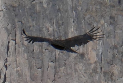 Bereits um sieben Uhr sind wir bereit zur Abfahrt. Vielleicht sehen wir beim Cruz del Condor mehr Kondore. Die Aussicht in den abgrundtiefen Canyon ist gewaltig, schon deswegen hat sich die Fahrt hierher gelohnt. Die Kondore halten sich jedoch bedeckt. Ein paar kurze Momente erhaschen wir einen Blick auf die majestätischen Vögel. In weiten Kreisen lassen sich zwei Kondore aufwärts in den Himmel tragen, jedoch sehr weit weg.